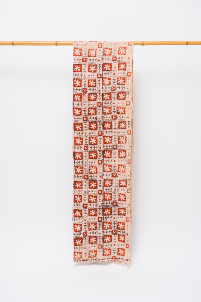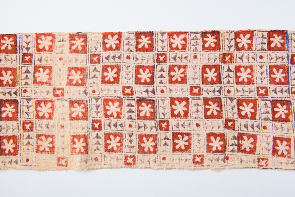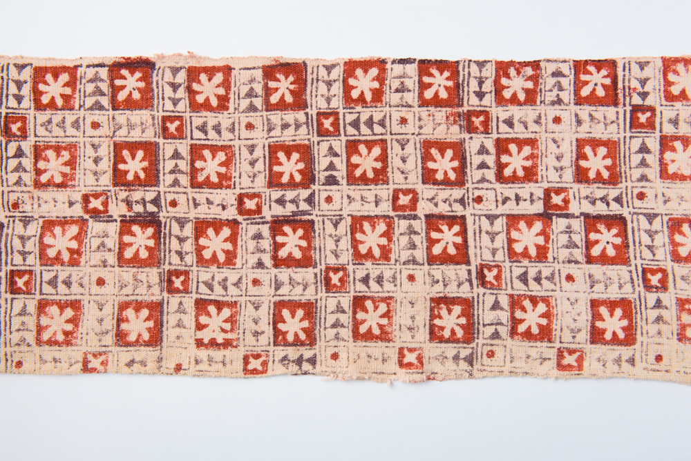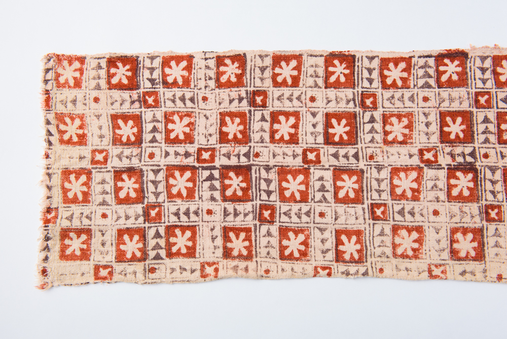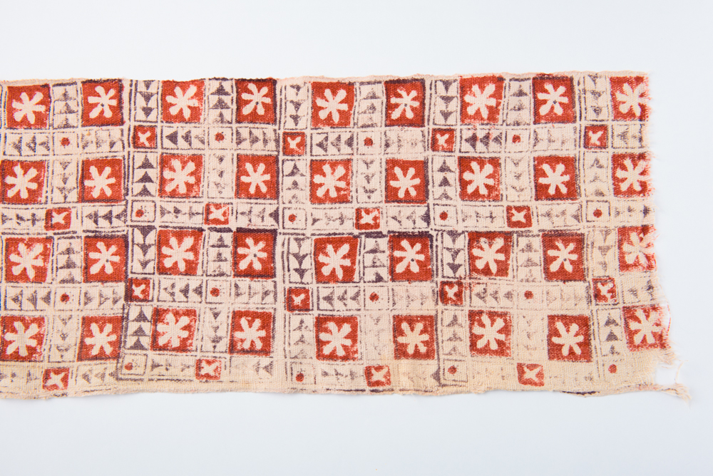 19世紀後半と思われるブロックプリント。木版にインクをつけ、布に押し付けることで模様を描いていく。産地としてはインドが有名であるが、