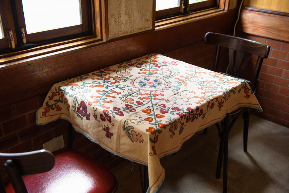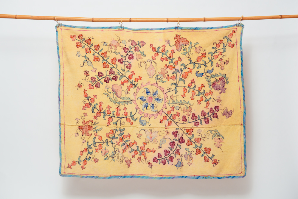 これは、山積みになったスザニの埃にまみれながら発見した、1900年前後と思われるもの。イギリスのアーツアンドクラフツ運動と時代を同じくし、デザインにも共通するものを感じる。見つけた時には興奮を隠せなかった。