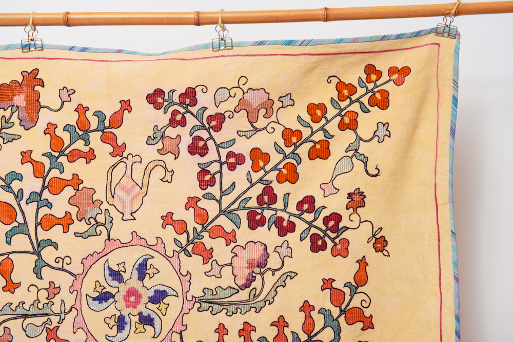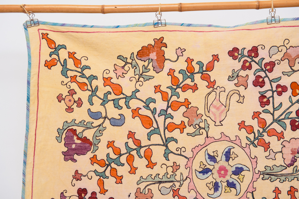 This was found in a pile of suzanis, covered in dust, and thought to have been produced around 1900. It was from the same period as the Arts and Crafts movement in the UK, and I could see similarities in the design. I couldn't hide my excitement when I found it.