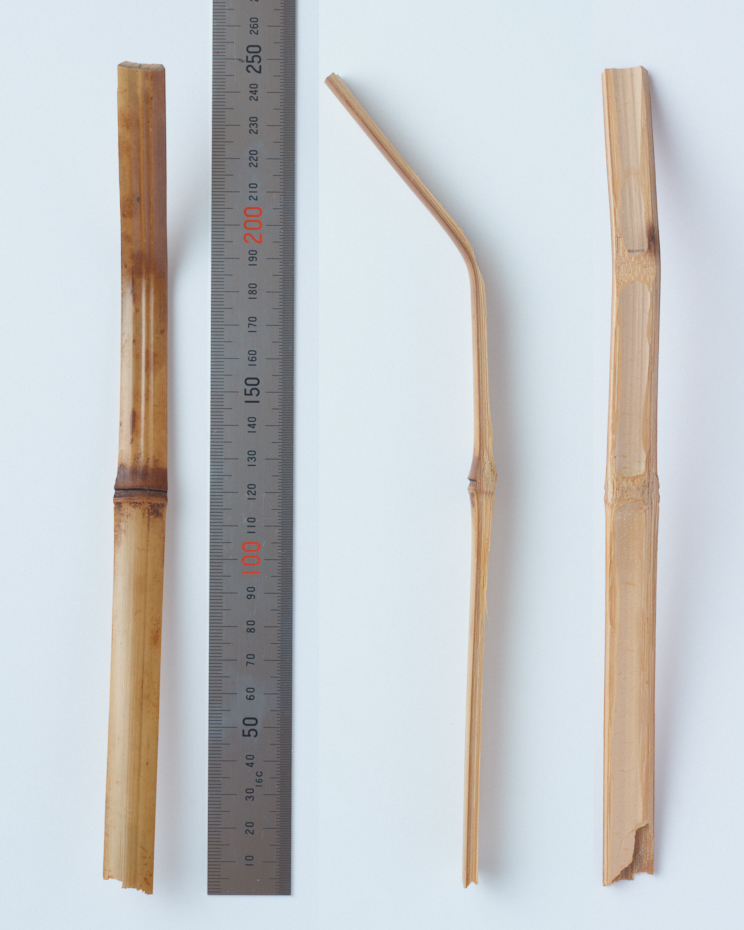 The tip of the chashaku is finished in a bent state and must be cut and finished by the purchaser.